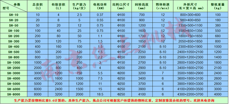 三、結(jié)構(gòu)特點(diǎn) 1、本設(shè)備采用結(jié)構(gòu)新穎的錐形筒體,較為一般混合效果好。 2、結(jié)構(gòu)精巧,外形美觀,能運(yùn)用建筑高度四米車間內(nèi)使用。 3、物料混和時,沒有機(jī)械擠壓和強(qiáng)烈磨損,能保持物料顆粒完整,出料方便,換品時清洗方便。 4、設(shè)有自動定時裝置,可設(shè)定0~60分鐘自動停止。 5、采用不銹鋼蝶閥放料,混合過程在封閉狀態(tài)中進(jìn)行無粉塵泄漏和飛揚(yáng)現(xiàn)象出現(xiàn)。 6、采用重力擴(kuò)散原理混合,對物料的壓饋小,不會對物料產(chǎn)生剪切粉碎。 7、筒體采用優(yōu)質(zhì)不銹鋼制作,內(nèi)外壁都經(jīng)拋光處理,混合過程中對物料無污染,功耗小,清洗方便。 8、操作簡單,容易清洗,適合G.M.P食品、藥廠使用。 9、大容積的混合機(jī)可配置上料系統(tǒng)或上料平臺,提高工作效率和改善工作環(huán)境。 四、型號參數(shù)