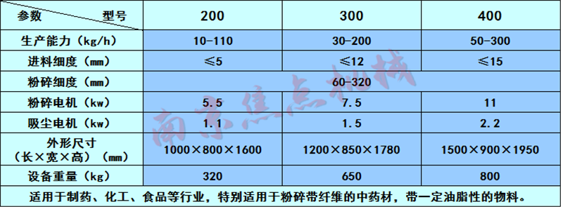 一、用途 該機組適用于制藥﹑食品﹑化工等行業(yè)。具有風冷﹑無篩網(wǎng)等多種性能,它不受物料粘度,軟硬度及纖維適用于粉碎帶纖維的中藥材,帶一定油性的物料。 二、工作原理 物料由加料進入粉碎室,通過高速旋轉(zhuǎn)的刀片進行粉碎,調(diào)節(jié)分級輪于分級盤的距離來達到所要求的物料細度,高速旋轉(zhuǎn)的風葉把達到要求的物料從粉碎室引到集料箱布袋產(chǎn)生的粉塵由吸塵箱收集,該機組按GMP標準設(shè)計,結(jié)構(gòu)簡單,操作清理方便,噪音小,產(chǎn)量高,除電機,骨架外,其他全部用優(yōu)質(zhì)不銹鋼304板材制造,粉碎過程中無粉塵飛揚。 三、結(jié)構(gòu)特點 該機由加料斗﹑分級輪﹑粉碎刀片﹑齒圈﹑粉碎電機﹑出料口﹑風葉﹑集料箱﹑吸塵箱等部分組成。 四、型號參數(shù)